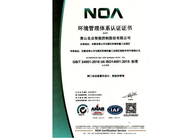 NOA環(huán)境管理體系認(rèn)證證書(…