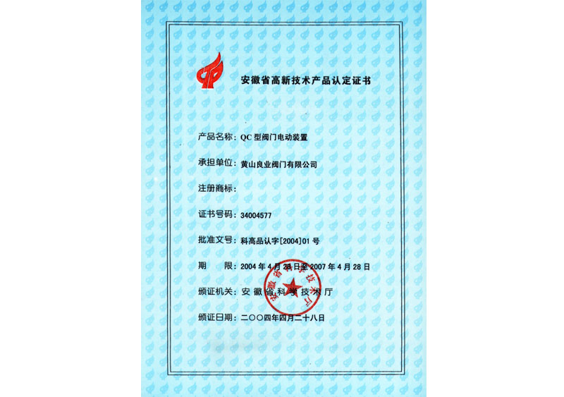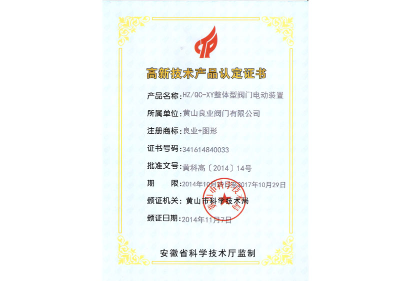 安徽省自主創(chuàng)新新產(chǎn)品證書